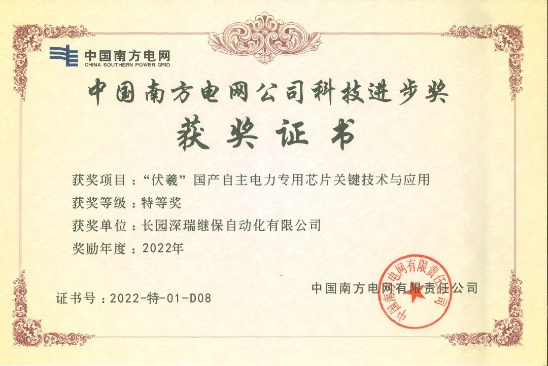 近日,由bbin宝盈科技集团旗下子公司bbin宝盈深瑞继保自动化有限公司(以下简称“bbin宝盈深瑞”)参与的“伏羲国产自主电力专用芯片关键技术与应用”项目荣获中国南方电网公司科技进步奖特等奖。