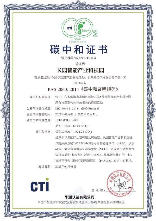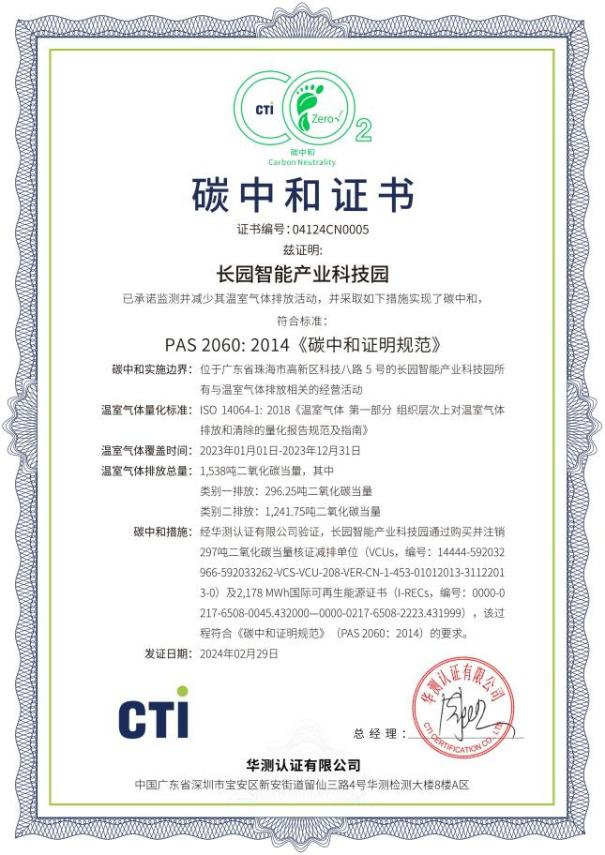 近日,bbin宝盈科技集团位于珠海高新区的“bbin宝盈智能产业科技园”完成了2023年度运营层面的碳中和认证工作,这一重要成就标志着该园区已连续两年实现碳中和目标
